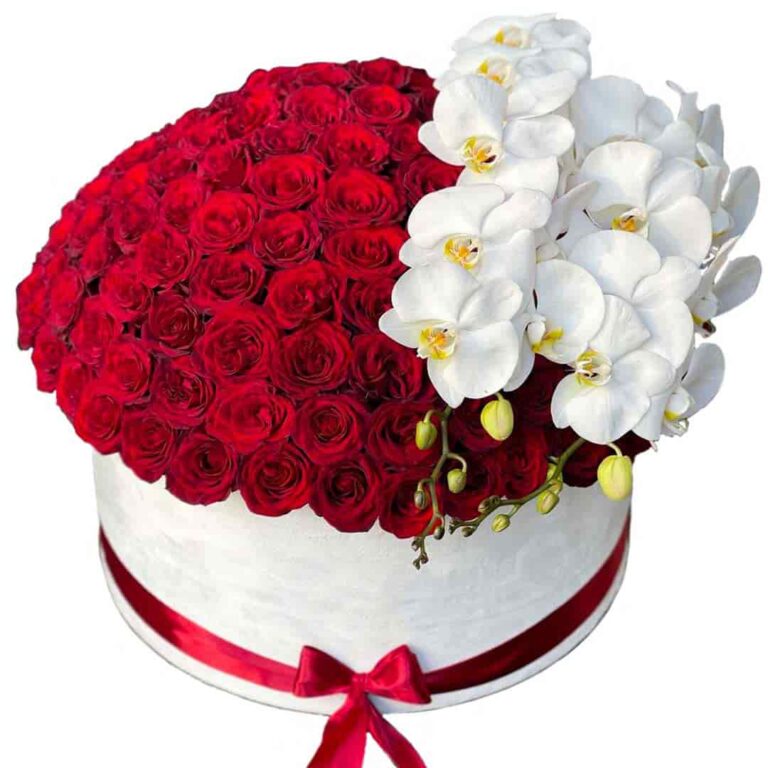 شکوه عشق در یک جعبه! ترکیب خیره‌کننده‌ی رزهای قرمز هلندی با گل‌های ظریف ارکیده سفید، نمادی از احترام و دلبستگی عمیق است. هدیه‌ای لوکس و ماندگار که بدون کلام، زیباترین حرف‌ها را می‌زند. مناسب برای سالگرد، روز عشق و لحظات خاص شما.
